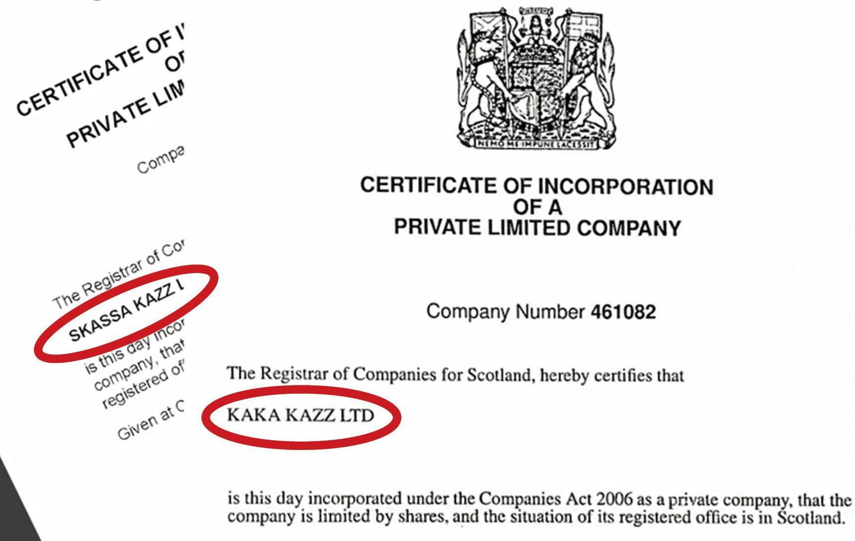 I documenti ufficiali delle società “Kaka Kazz” e Skassa Kazz” dell’imprenditore pugliese Luigi Aseni.