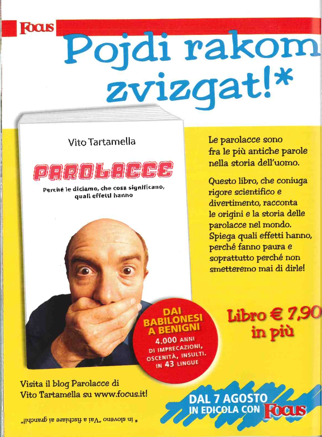 Tempo d’estate, tempo di… “Parolacce”: dopo la fortunata stagione in libreria (che ancora continua!), da domani, 7 agosto, il libro esce ora anche in edicola, abbinato al nuovo numero di Focus. E’ la terza edizione del libro.