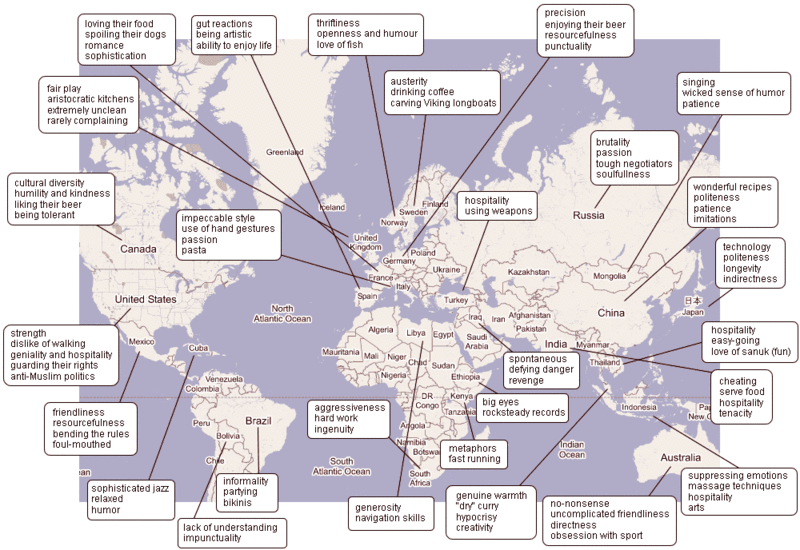 In ogni caso, lo scenario dei nomignoli con cui siamo qualificati si presta ad altre considerazioni. Innanzitutto, salta all’occhio che all’estero siamo identificati (o meglio, additati) soprattutto per la nostra dieta (30%), seguita dal modo di parlare (pronuncia e nomi personali danno un 32%) e dal comportamento (10%), visto come violento, disonesto e criminale.