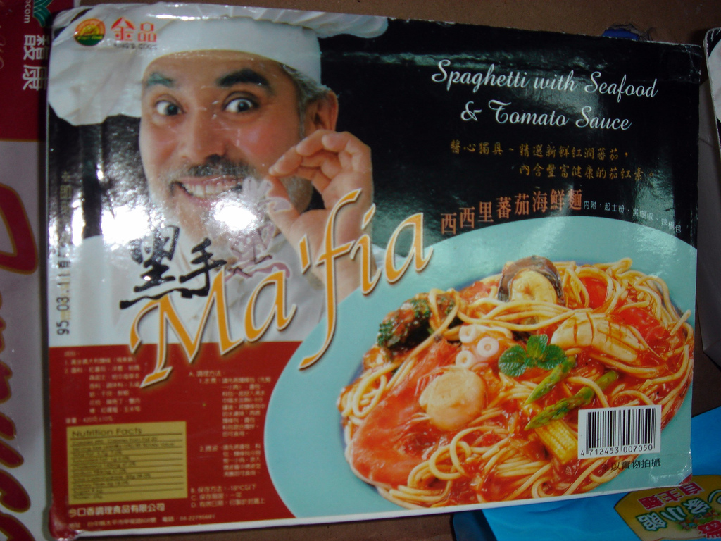 Spaghetti cinesi con frutti di mare: per caratterizzare l’italianità, il prodotto è stato chiamato “Ma’fia”.
