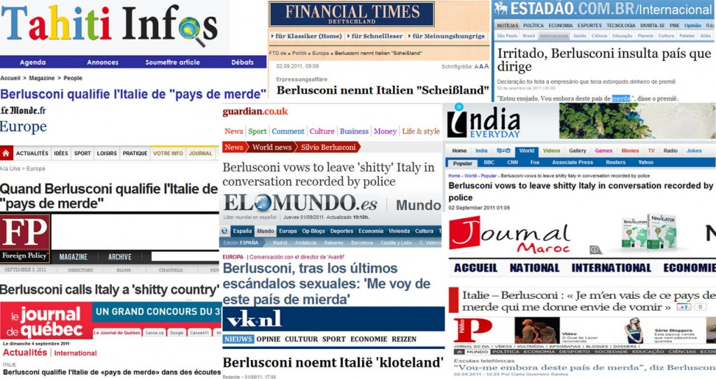 La frase antipatriottica di Berlusconi nei giornali di tutto il mondo.
