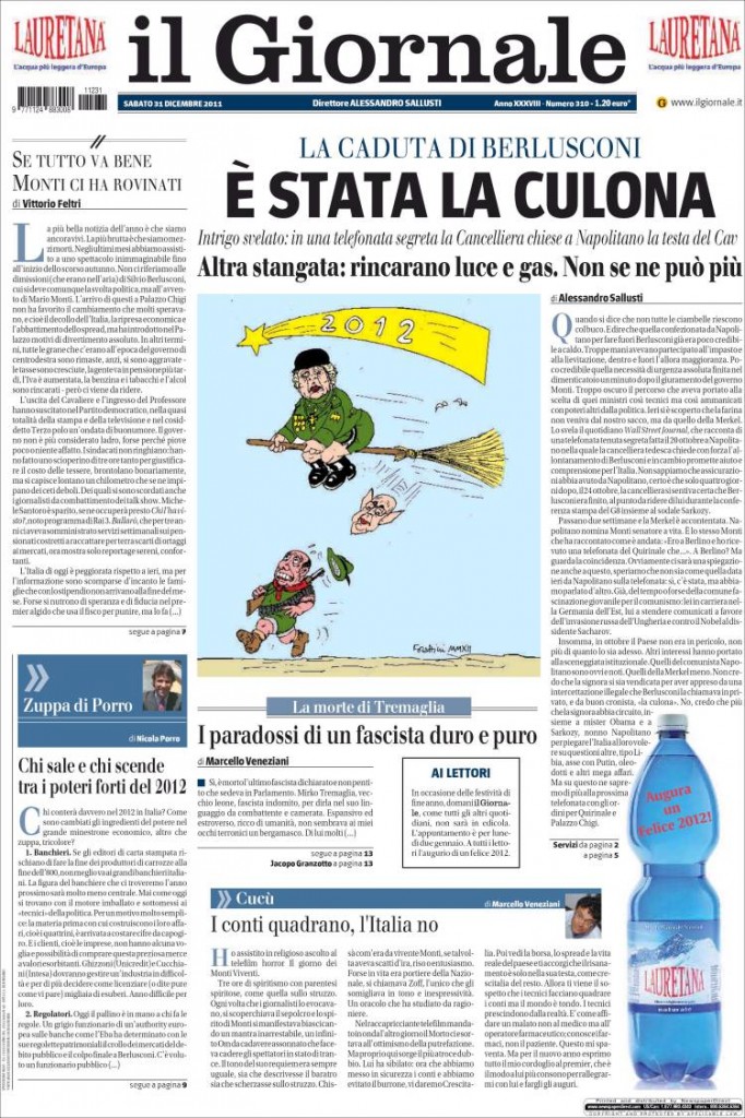 Dove e quando: prima pagina de “Il Giornale” del 31 dicembre 2011, titolo d’apertura.