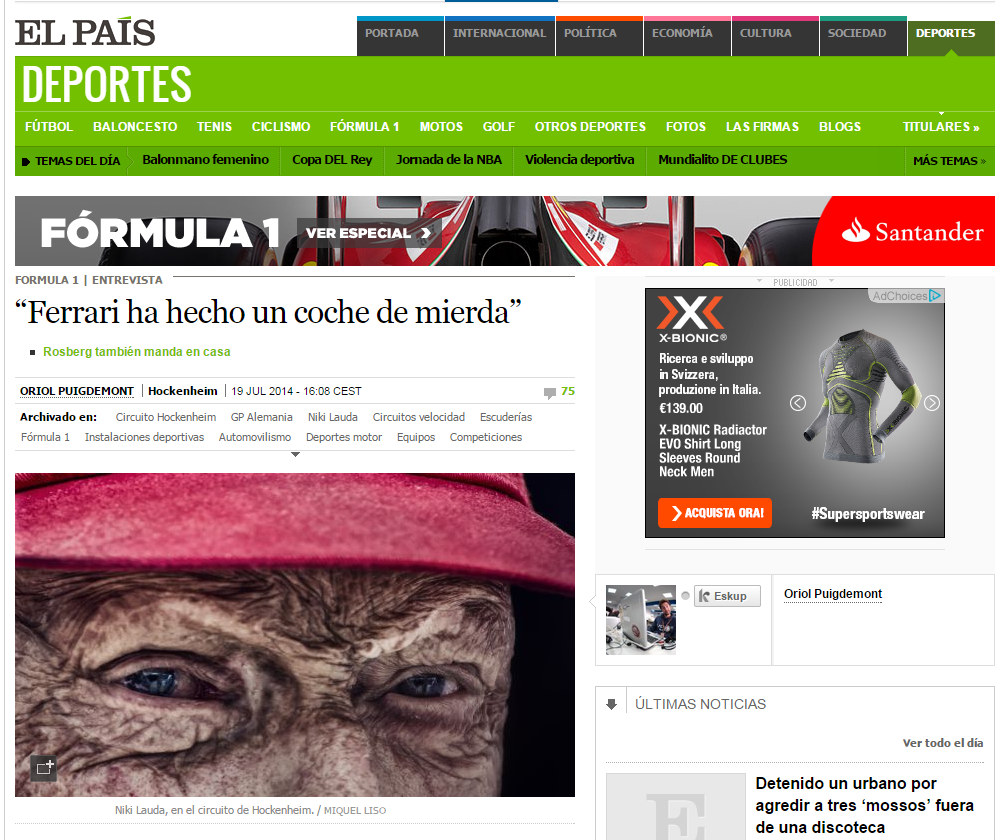 Niki Lauda, 19 luglio 2014, intervista al quotidiano spagnolo El Paìs.