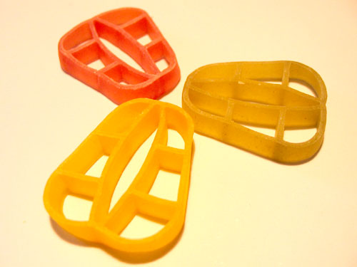 FICHETTE TRICOLORI: sono nate sicuramente dopo i cazzetti, come operazione di marketing complementare (potremmo dire per “par condicio”). La pasta riproduce, nei limiti possibili dell’impasto, l’anatomia della vulva.