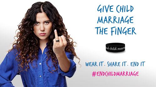 “Dai il dito al matrimonio infantile” (2015). Una scelta simile l’ha fatta l’associazione britannica Plan, che si occupa di bambini: per raccogliere fondi contro i matrimoni infantili, ha lanciato una campagna che consiste nella vendita di un anello con la frase “Basta matrimoni infantili”. E l’ha fatto indossare alla cantante Eliza Doolittle con lo slogan: “Dai il dito al matrimonio infantile”. Anche se il dito era l’anulare, l’effetto è più che evidente: fanculo ai matrimoni infantili, una piaga da abbattere in tutto il pianeta entro il 2030. Oggi, nei Paesi in via di sviluppo, 1 bimba su 9 viene fatta sposare prima dei 15 anni d’età. La campagna è incisiva: le spose bambine sono un dramma su cui non c’è da scherzare.