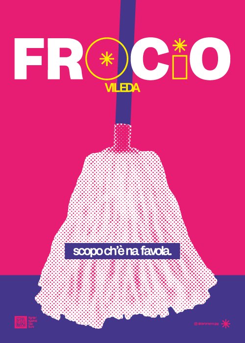 Frocio Vileda (2024). Si chiama FAGS, acronimo di “Fightin’ Against Gay Slurs”, ossia “combattere contro gli insulti gay” (e fag, faggot in inglese è lo spregiativo per gli omosessuali). E’ una campagna ideata dal grafico Dario Manzo, che utilizza gli insulti omofobi (frocio, checca, ricchione, finocchio, arrusu, pedè…) per depotenziarli. “Appropriarsi degli insulti diventa uno dei modi per combatterli, forse il più efficace perché è in grado di trasformarne la percezione. Prendere un insulto e trasformarlo equivale a dire: non fa più male perché ora questa parola è mia e la uso come voglio”. Idea originale, tutta da verificare l’efficacia reale.