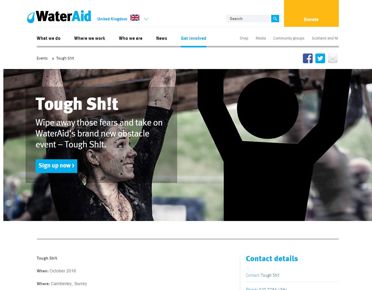 “Merda dura” (2015). Si chiama così una marcia a ostacoli prevista il prossimo ottobre a Camberley (Uk) e promossa dall’associazione “Water aid”, impegnata a raccogliere fondi per l’acqua nei Paesi arretrati. La marcia è stata battezzata “Tough shit” (letteralmente “merda dura“, situazione difficile, in italiano si direbbe: cazzi amari), per sensibilizzare i partecipanti sul problema dei 2,5 miliardi di persone che, nel mondo, vivono in città prive di scarichi fognari. Uno slogan simpatico e pertinente.