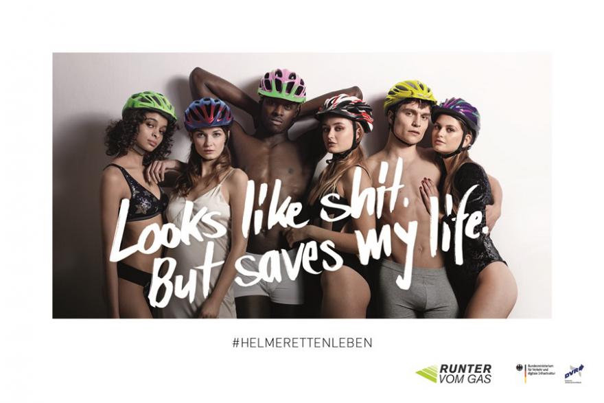 “Sembra una merda. Ma mi salva la vita” (2019). Questa campagna non è nata da qualche creativo americano in vena di provocazioni, ma nell’austera terra di Germania. E per di più è un’iniziativa ufficiale del ministero dei Trasporti. Come si spiega? Il ministro dei trasporti Andi Scheuer dice che sono soprattutto i giovani tedeschi, fra i 17 e i 30 anni, a non indossare il casco da ciclisti. E negli ultimi tempi si sono registrate molte vittime sulle strade. Quindi ha voluto ribadire, con termini coloriti, che quell’elmo “poco figo” serve a salvare la pelle. Campagna efficace? Sicuramente ha fatto discutere sui social media. Soprattutto per la scelta di mostrare ciclisti in lingerie: già lo slogan è drammatico (in quanto volgare), ma con i ciclisti sexy si aggiunge la pruderie dell’erotismo e – qualcuno dice – del sessismo. Se avessero scelto un soggetto ironico o autoironico, la campagna sarebbe stata più efficace.