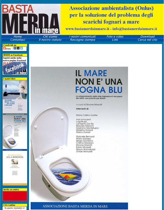 Ma dopo la breve parentesi dello spettacolo di Grillo, la strada dell’associazione è rimasta comunque in salita. «Quando mi presentavo alle autorità, dicendo il nome dell’associazione, l’effetto era quello di un pugno nello stomaco» racconta ancora Giordano. «Ma abbiamo tenuto duro: insisti oggi, insisti domani, pian piano i riminesi hanno capito l’importanza della nostra battaglia e il nostro nome è stato accettato da tutti, cittadini, stampa e istituzioni. Solo il “Resto del Carlino”, quando scrive di noi, glissa sul nome chiamandoci “Basta m… in mare”. Ma ciò che conta è che ora siamo finalmente ottimisti: i lavori di potenziamento delle fogne sono partiti, e già da quest’anno i collettori di Rimini nord non scaricheranno più in mare. Entro il 2020 non avremo più questo problema. Che però continua ad affliggere tante altre città costiere d’Italia: ecco perché ci hanno chiesto di aprire comitati affiliati a Falconara Marittima e forse anche in Salento».