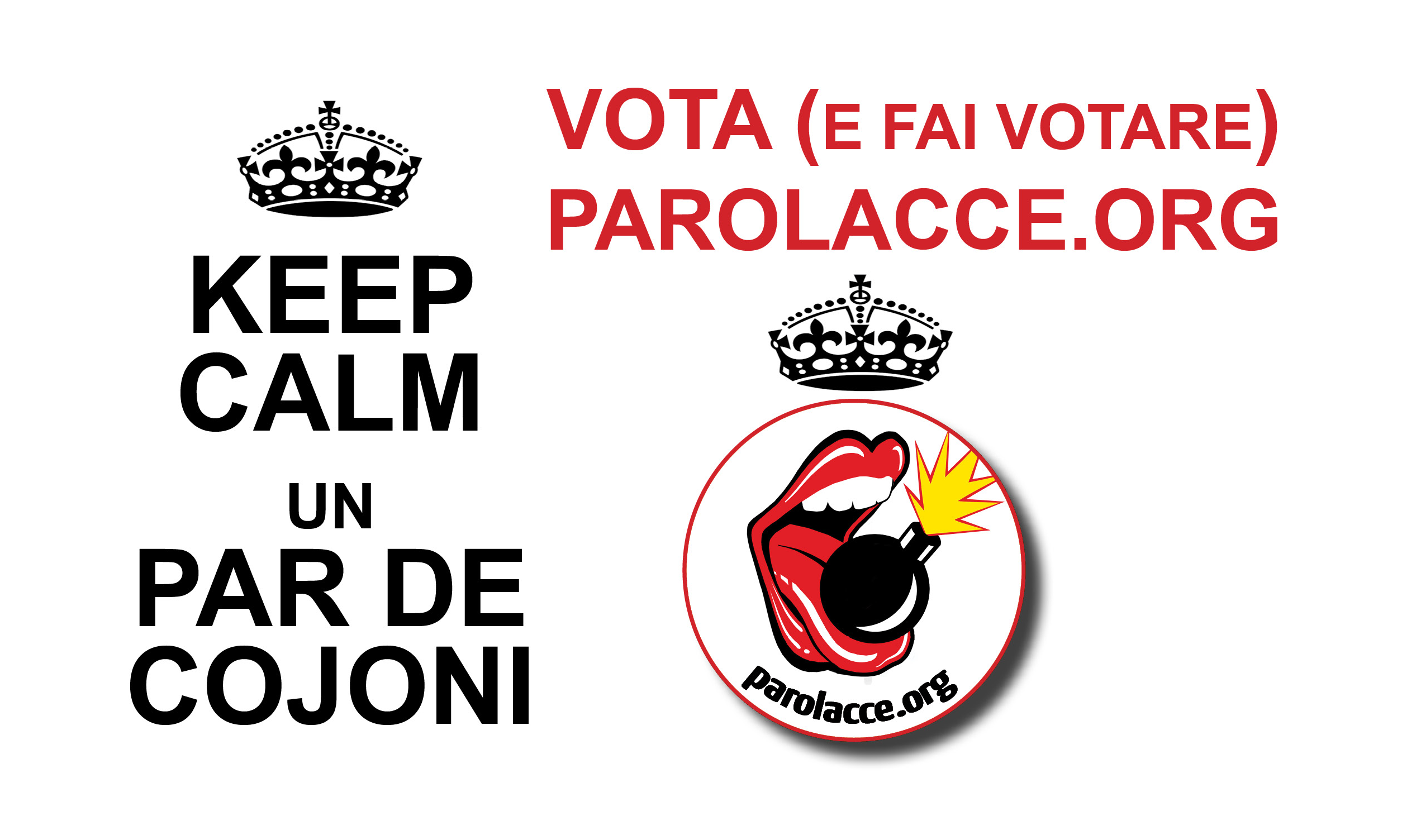 “Parolacce” era stato selezionato fra migliaia di siti di linguistica, lessicografia, traduzioni. Nella finale toccava al pubblico eleggere il proprio sito preferito: hanno partecipato al voto oltre 30mila persone di tutto il mondo. Non era facile entrare in classifica, ma questo sito si è piazzato al 77° posto della classifica generale dei siti di linguistica, e al 18° in quella riservata ai blog professionali. La competizione aveva anche sezioni di linguistica dedicate ai canali YouTube, alle pagine Facebook e agli account Twitter (nella foto, uno dei teaser per la campagna su Twitter).