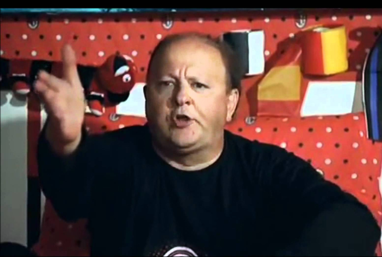 Massimo Boldi mentre sfancula (dal film “Tifosi”).