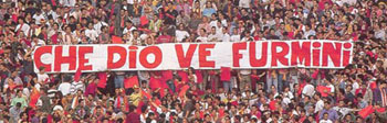 “Che Dio vi fulmini” (in romanesco): striscione allo stadio.