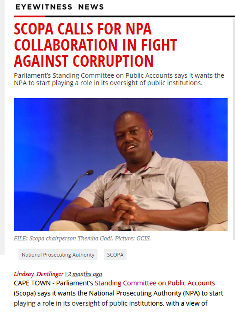 Il sesso, a dispetto delle apparenze, non c’entra. Lo Standing Committee on Public Accounts (SCOPA) ovvero il Comitato permanente sui conti pubblici è un austero organo di controllo delle spese parlamentari in Sud Africa.