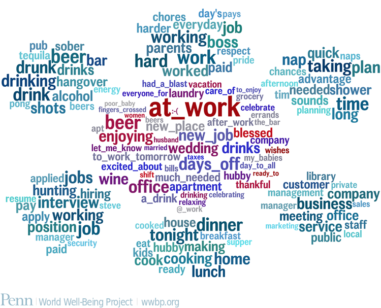 Questo mastodontico studio, pubblicato sulla rivista scientifica “PlosOne” e reso possibile da computer e software capaci di elaborare e incrociare miliardi di dati, è stato fatto dal World Well-Being Project, un gruppo di ricerca del Centro di psicologia positiva dell’Università della Pennsylvania, negli Usa. Il loro obiettivo è misurare il benessere psicologico e fisico delle persone analizzando quanto scrivono sui social media (Facebook e Twitter).