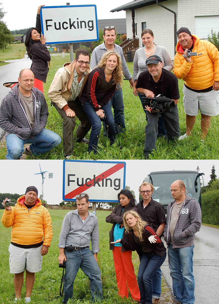 Se ne accorsero, durante l’ultima guerra mondiale, i soldati inglesi e americani stanziati nella vicina Salisburgo. E iniziarono un pellegrinaggio a Fucking per farsi fotografare davanti al cartello col nome del paese. Che oggi è rimasto piccolo: ha un centinaio di abitanti ed è la frazione di Tarsdorf. Eppure è meta di un discreto flusso di turisti, attratti dalla prospettiva di farsi un selfie in quel luogo. Ma il fenomeno è degenerato: molti, non contenti della foto, hanno portato via un souvenir ben più tangibile, i cartelli stradali. E dato che ciascuno costa 300 euro, la moda ha iniziato a pesare sui magri bilanci del paese, tanto che nel 2004 fu messo ai voti il cambio di nome, che fu però bocciato dagli abitanti. Così si è trovata una soluzione pratica: i cartelli sono stati saldati in acciaio e fissati nel cemento.