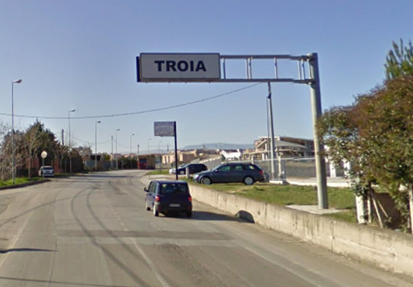 Troia (FG): l’ingresso della città con il cartello stradale.