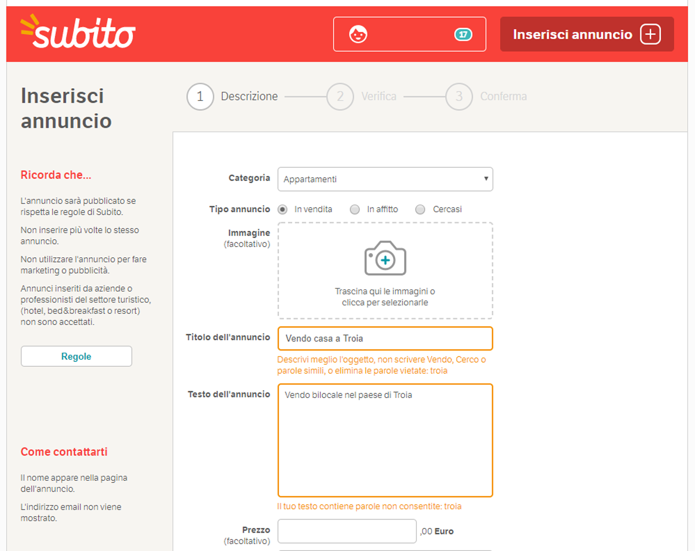Parola vietata negli annunci