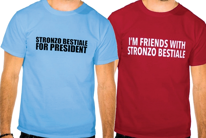 Una delle T-shirt che ha fatto il giro del mondo è ispirata da questo sito: reca le scritte “Stronzo Bestiale for president” e “I’m friends with Stronzo Bestiale” (sono amico di Stronzo Bestiale). L’appellativo era stato scelto da un fisico come firma beffarda in una serissima ricerca pubblicata da una rivista scientifica. Ho raccontato la sua storia nel 2014, e ha fatto il giro del mondo (potete leggerla qui).