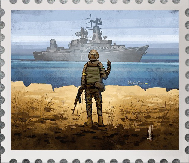 Uno dei francobolli proposti: “Nave russa, vai a farti fottere!” dice la scritta. E sotto: Isola Zmiinyi, gloria agli eroi Dopo che la Russia ha invaso il Paese, all’inizio di marzo le Poste ucraine (Ukrposhta) ha indetto un concorso per disegnare un francobollo che illustrasse “la determinazione degli ucraini a difendere la loro terra”. Le Poste hanno ricevuto 500 disegni, tra i quali hanno selezionato 20 finalisti: gran parte di questi ha riprodotto un episodio accaduto il 24 febbraio, quando una nave da guerra russa ha minacciato 13 guardie di frontiera ucraine che proteggevano l’Isola dei serpenti (Zmiinyi), nel Mar Nero, nella regione di Odessa. La nave, via radio, ha intimato per due volte ai soldati ucraini di arrendersi: «Siamo una nave da guerra russa. Propongo di deporre le armi e di arrendersi per evitare spargimenti di sangue e vittime ingiustificate. Altrimenti sarete bombardati». Ma la risposta dei militari ucraini è stata sorprendente: «Nave da guerra russa, vai a farti fottere». Qui l’audio dello scambio: Alla fine, ovviamente, le guardie hanno avuto la peggio e sono state catturate (inizialmente si pensava fossero morte). Le Poste sono soddisfatte: «il nostro concorso è diventato una forma di arte terapia. E ora cercheremo di stampare questi nuovi francobolli».