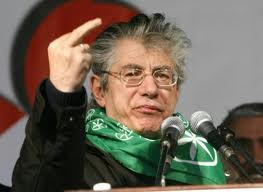 E’ andata peggio al fondatore della Lega Nord, Umberto Bossi, che nel 1997 (nella veste di segretario federale) insultò il Tricolore – il simbolo dell’identità nazionale – durante due comizi: a Cabiate disse «Quando vedo il tricolore mi incazzo. Il tricolore lo uso soltanto per pulirmi il culo»; a Venezia, disse a una signora che lo esponeva «Il tricolore lo metta al cesso». Bossi fu denunciato per vilipendio al Tricolore e il Tribunale di Como lo condannò a 1 anno e 4 mesi di reclusione. L’articolo 292 del Codice Penale prevede infatti la pena della reclusione da 1 a 3 anni per chi ingiuria la bandiera.