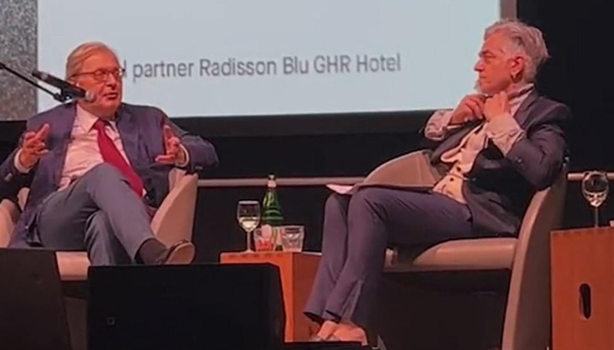 Sgarbi e Morgan durante l’incontro al museo Maxxi di Roma
