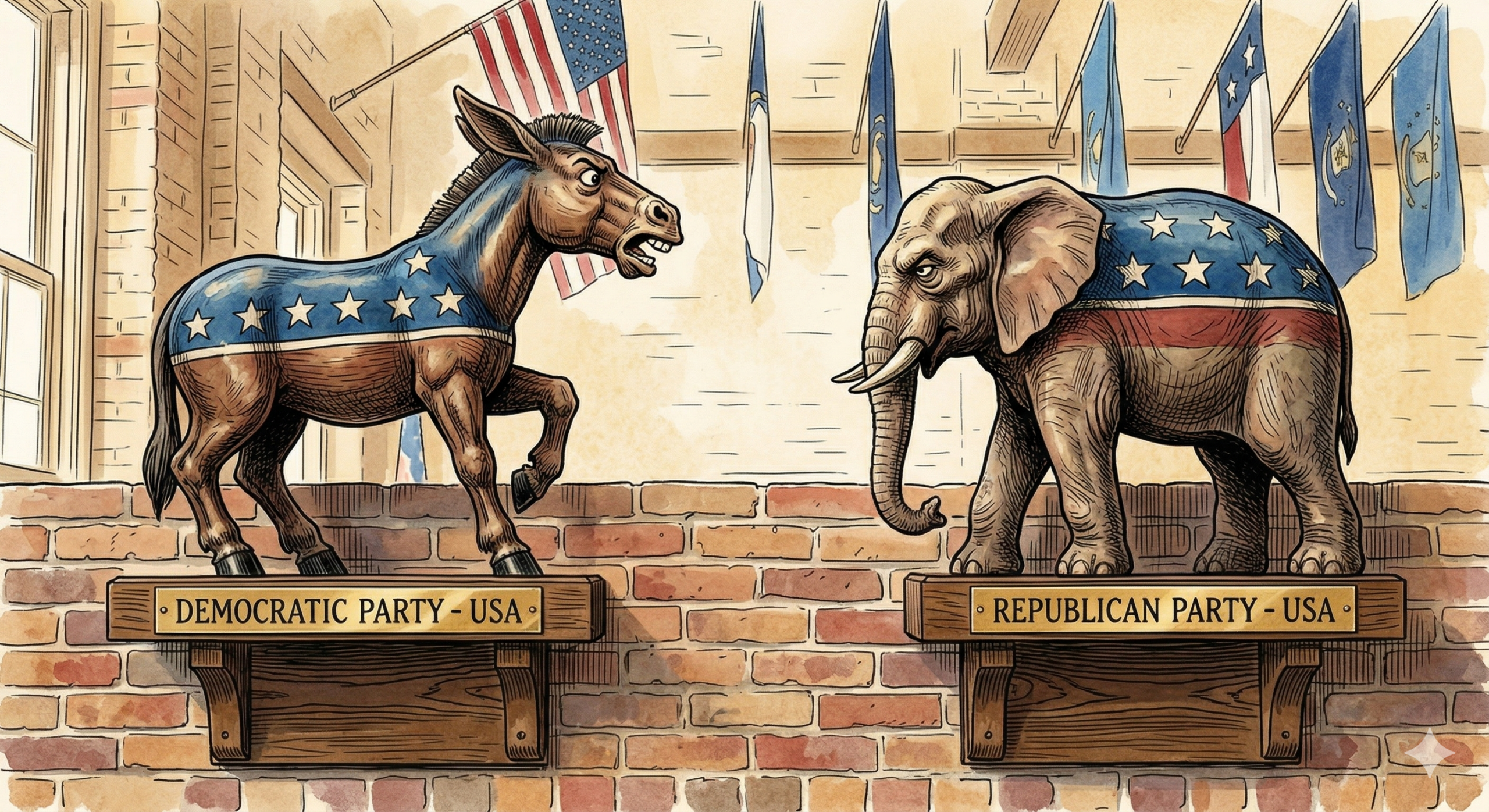 Le due fazioni statunitensi: i progressisti (democratici) e i conservatori (repubblicani).