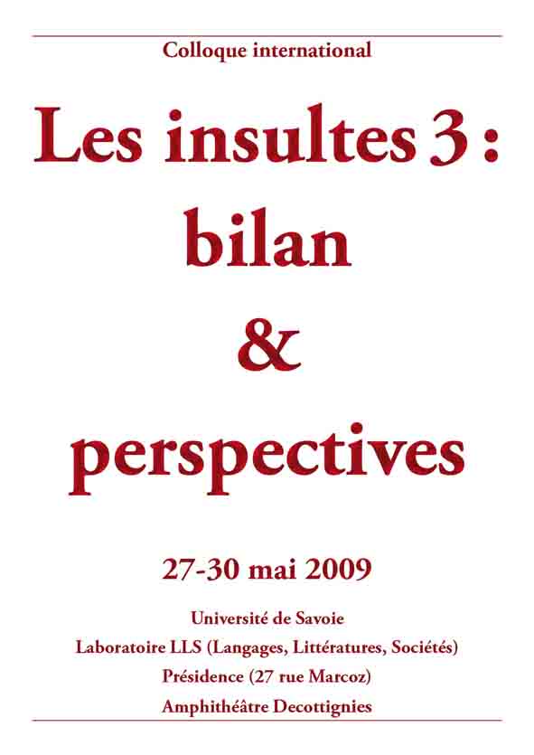 CHAMBERY – Sono uno dei relatori (unico italiano) al congresso internazionale “Les insultes 3: bilan et perspectives” organizzato dal Laboratoire Language Littérature Société dell’Université de Savoie di Chambéry (Francia). Riporto, in termini accademici, i risultati del volgarometro.