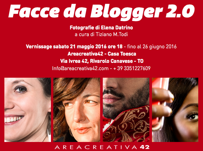 RIVAROLO CANAVESE – Alla galleria Areacreativa 42 di Rivarolo Canavese (To), due miei ritratti della fotografa Elena Datrino sono esposti nella mostra “Facce da blogger”. E’ un progetto artistico che mostra i volti dei principali blogger italiani. Racconto il progetto qui.