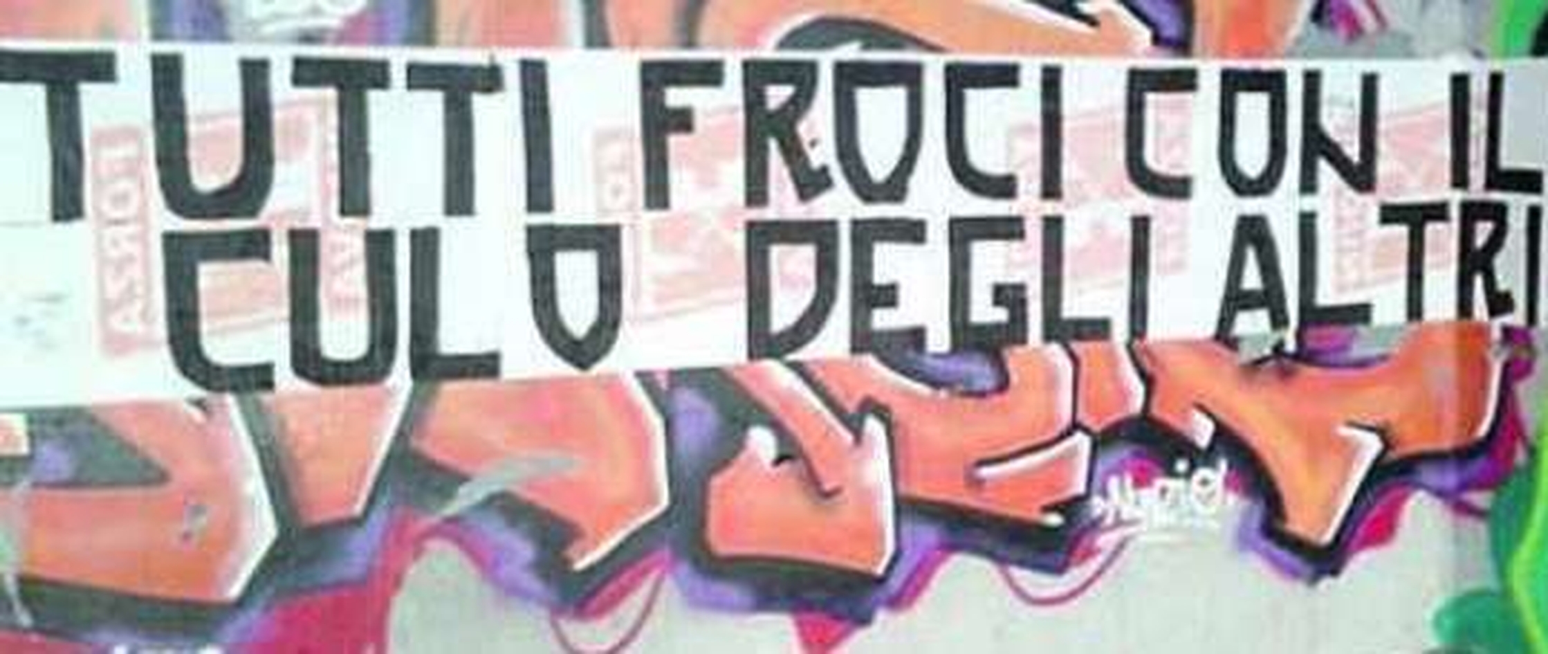 Sulle mura dell’istituto romano Socrate è stato affisso uno striscione a firma di Lotta Studentesca e Forza Nuova. Roma, 21 maggio 2013. ANSA/ UFFICIO STAMPA